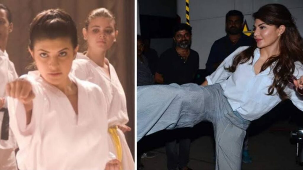 Known for her charming smile and dance moves, Jacqueline Fernandez has also carved a niche in the action genre. Her physical agility and interest in fitness naturally led her to martial arts training. Over the years, she has trained in various forms, including Taekwondo, boxing, MMA, and even aerial silks.