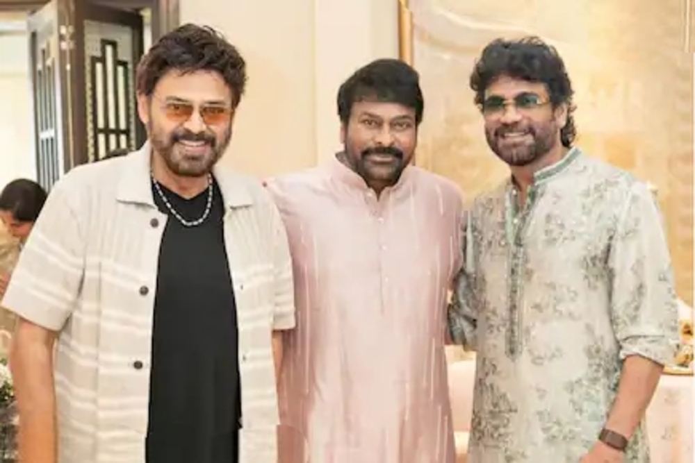 Chiranjeevi, known as the Megastar of Telugu cinema, looked cheerful in the photo alongside his longtime friends and colleagues. Nagarjuna and Venkatesh, both celebrated actors in their own right, have shared the screen and industry space with Chiranjeevi for decades. Their friendship dates back many years, making such moments particularly special for fans.