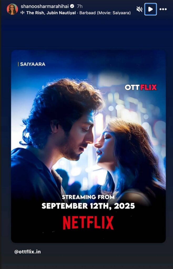 Fans who missed watching Saiyaara in cinemas can now enjoy it from the comfort of their homes. According to several social media posts and news reports, the film will make its OTT debut on Netflix, giving viewers another chance to see Ahaan Panday and Aneet Padda shine.
