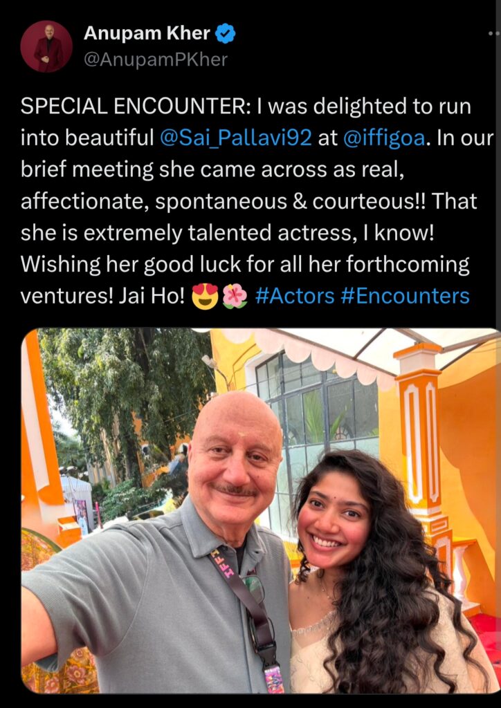 Kher’s public appreciation highlights Sai Pallavi’s growing influence in Indian cinema. As she continues to take on challenging roles, industry veterans like Anupam Kher recognize her potential to become one of the country’s finest actors.