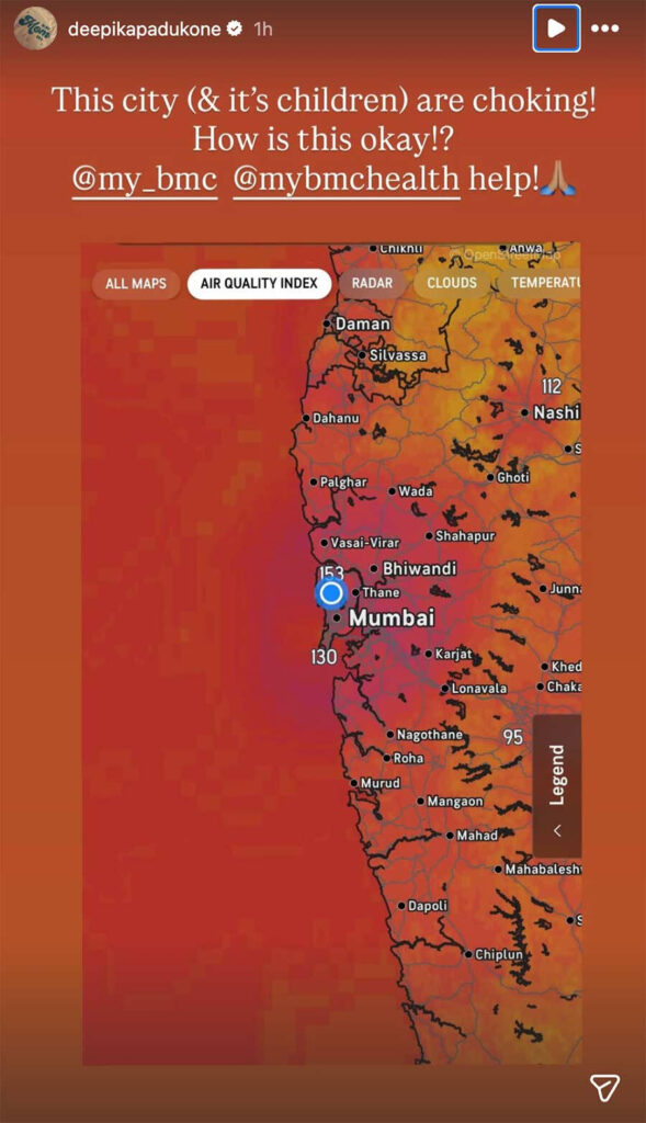 Deepika Padukone voiced strong concern over Mumbai’s poor air quality. She said children are choking from the toxic smog blanketing the city.