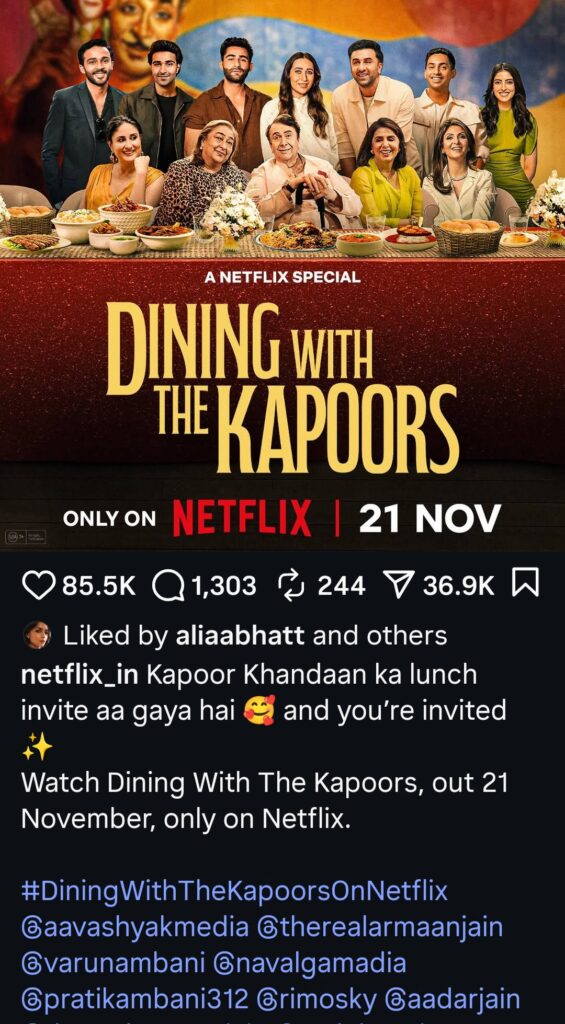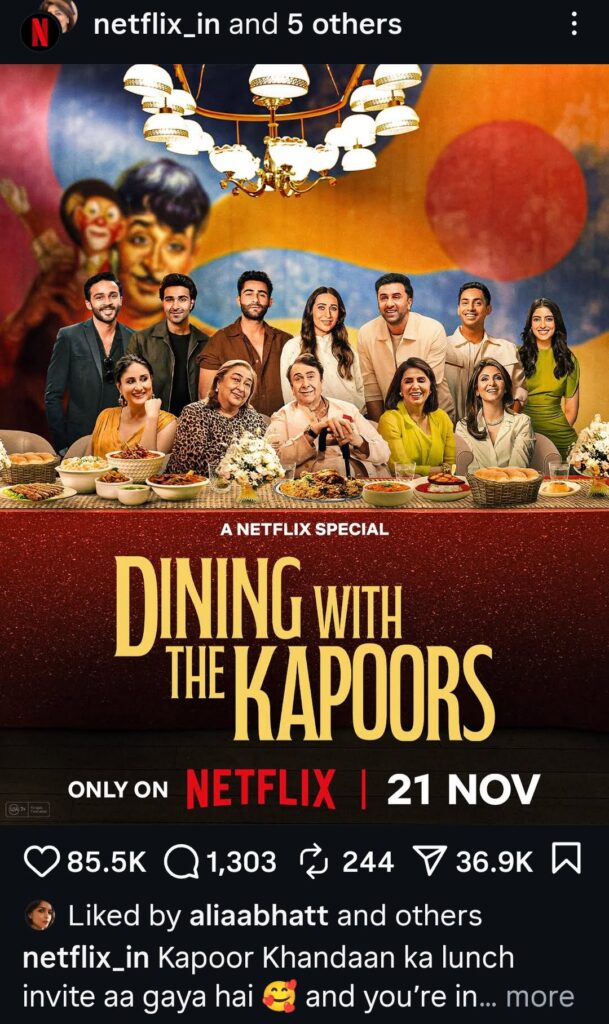 The show promises an intimate look at the Kapoors as they share meals, stories, and memories together. Fans will get to see their favorite stars in a relaxed, homely setting, away from the glitz and glamour of movies. The series highlights the family’s rich legacy in Bollywood, spanning decades of iconic films and performances.