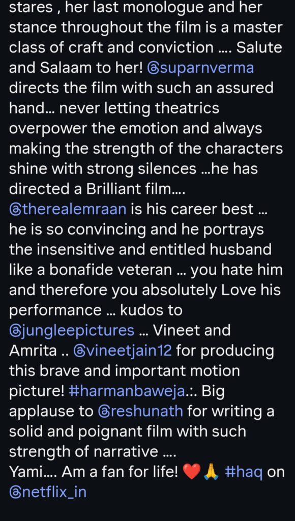 Yami Gautam responded gratefully, thanking Karan for the love. With such backing, Haq cements Yami’s spot as a rising force in Bollywood. If you haven’t watched it yet, it’s time to hit play—it’s raw, real, and riveting.