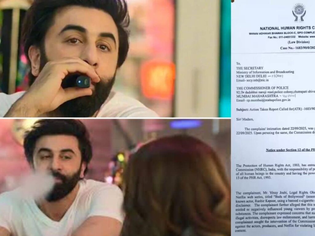 The National Human Rights Commission (NHRC) has asked Mumbai Police to register a case over a brief scene in Aryan Khan’s The Ba**ds of Bollywood* where Ranbir Kapoor is seen using an e-cigarette.