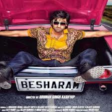 Therefore the poster of movie shows Ranbir Kapoor sitting in a funky colorful cloths sitting inside the bonnet of the car and number plate of care shows written Besharam on it which is itself a name of movie.