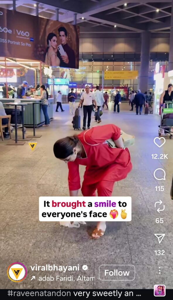 In the viral clip, Raveena was seen bending down to collect littered items scattered on the airport floor. Instead of ignoring the mess or waiting for cleaning staff, she took matters into her own hands. The actress calmly gathered the garbage and disposed of it properly, setting a powerful example for others.