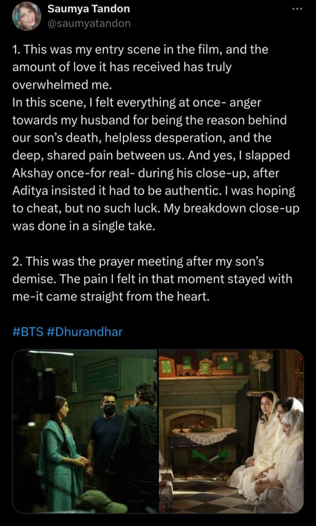 The incident happened because director Aditya Dhar wanted the scene to look completely genuine. He insisted that the slap should be authentic to make the moment more powerful on screen. Saumya agreed to do it, even though it meant actually hitting her co-star.