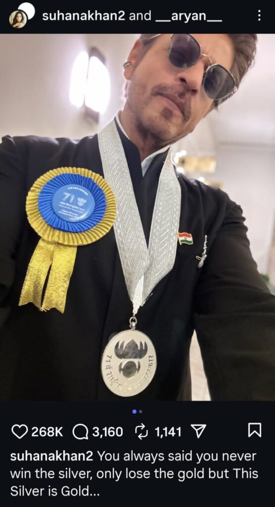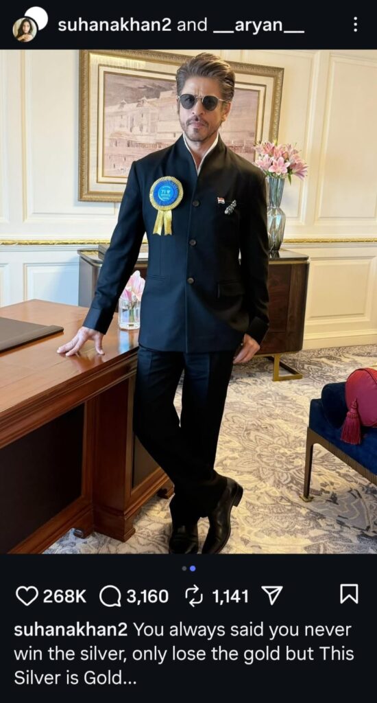 Suhana Khan shared a heartfelt post on her social media account, describing the award as “silver is gold” – a touching reference that highlighted how meaningful this recognition was for the family. Her emotional message resonated with fans who have watched Shah Rukh Khan’s journey in Indian cinema over the decades.
